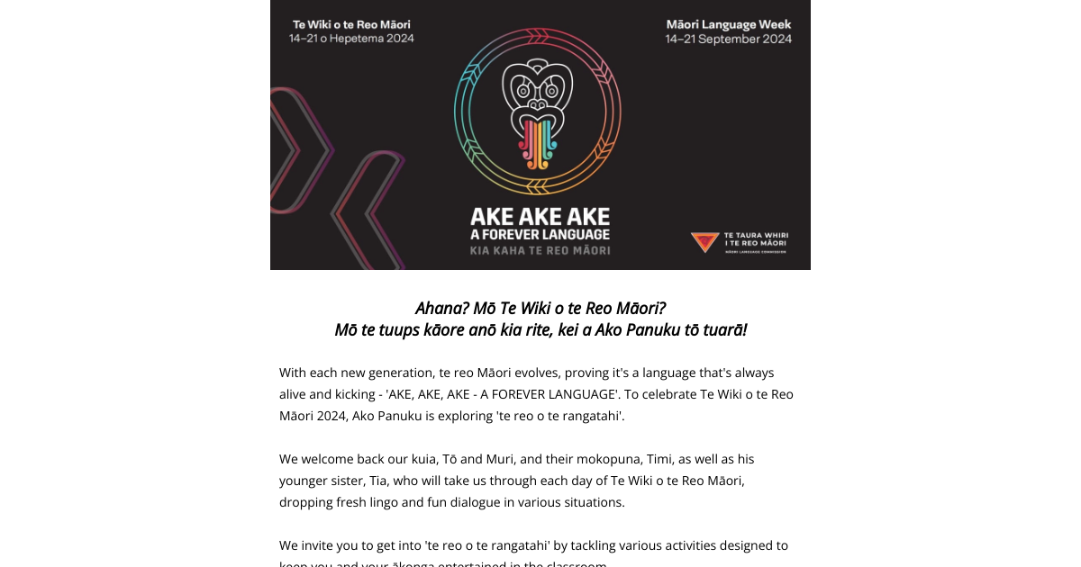 Your Te Wiki o te Reo Māori 2024 support from Ako Panuku...