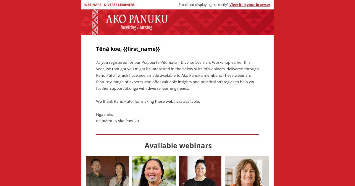 Mātakina ngā huiata, rēhita rānei i konei. Watch past and live webinars or register for upcoming ones right here.